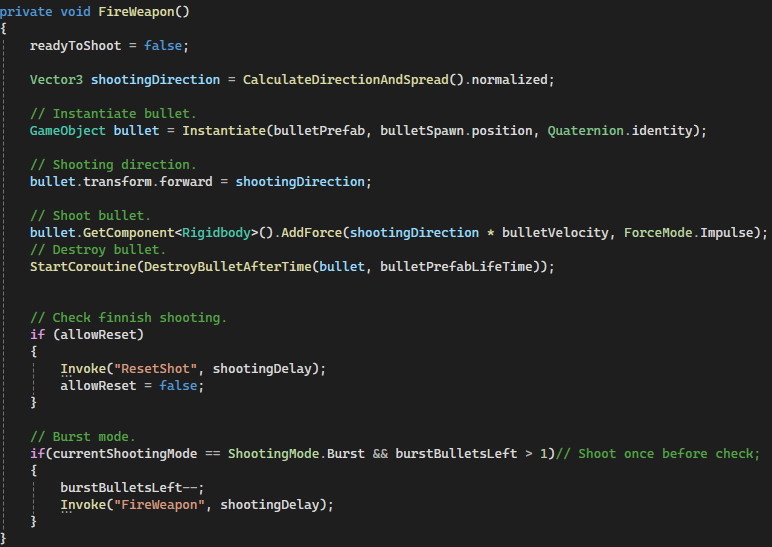 I wanted to make a script for the weapons that can be aplied on different models so i didnt had to make a different script for every new gun i want to add. I did this by making different shoot modes where you can change the bullet spread and delay. i also made that you can change the modes while in the game by pressing a button.